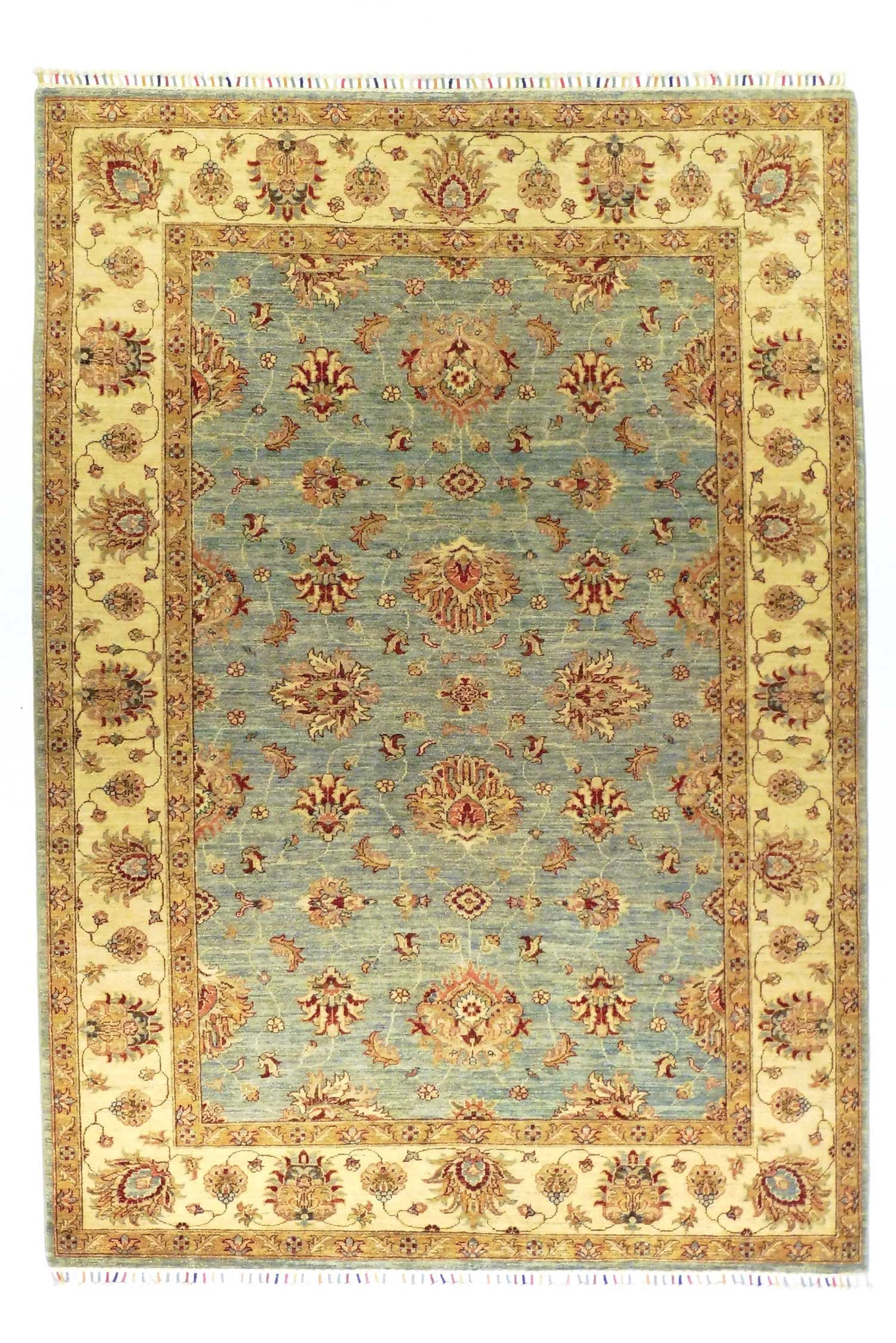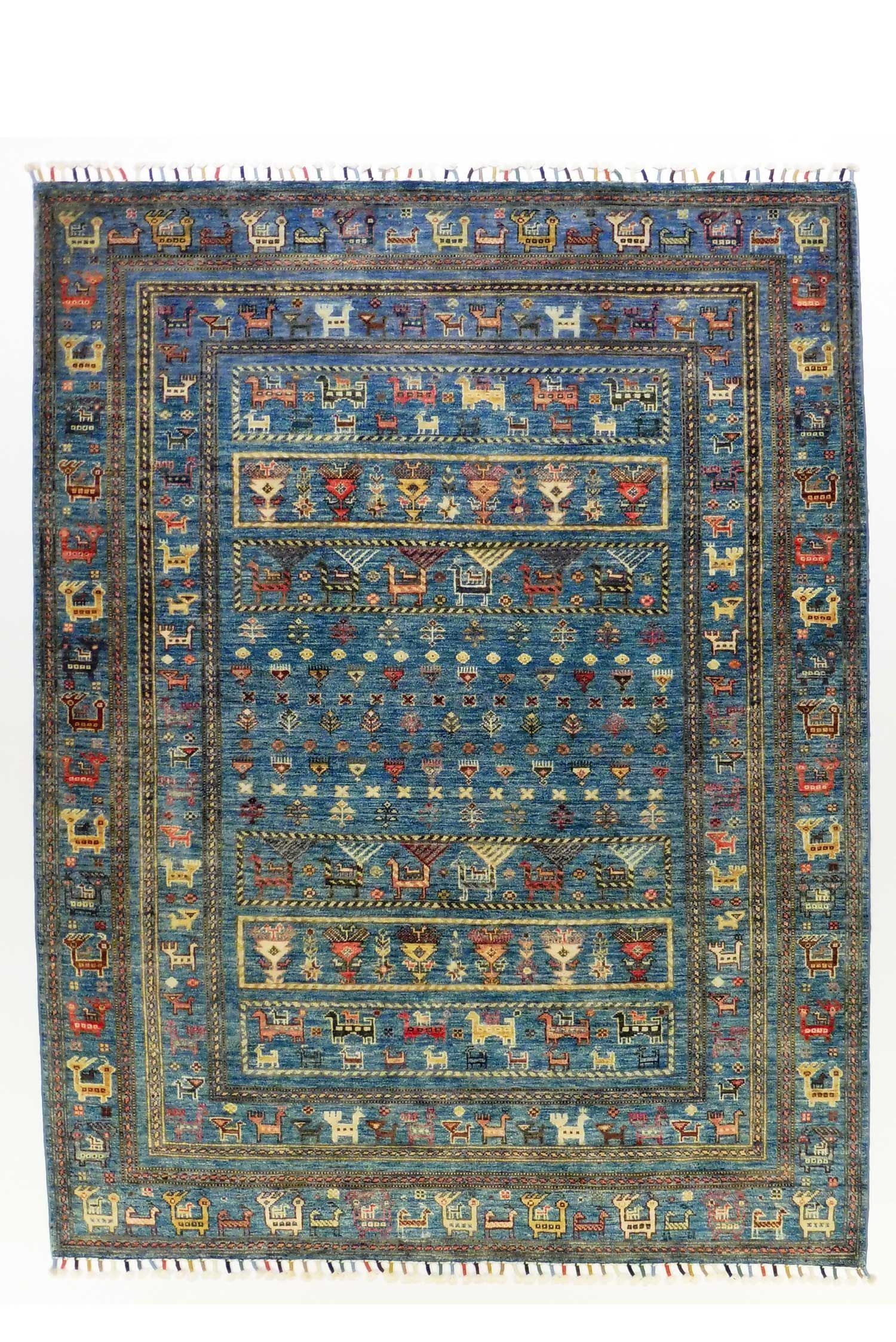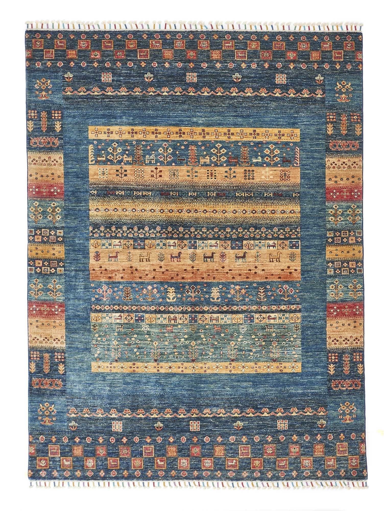 Questi tappeti sono famosi per la qualità della loro lana e i dettagli elaborati nei loro disegni. Il colore di fondo azzurro conferisce un’atmosfera rilassante e luminosa all'ambiente. Questo colore di base è meno comune nei tappeti tradizionali e rende il tappeto Ghazni particolarmente distintivo e ricercato