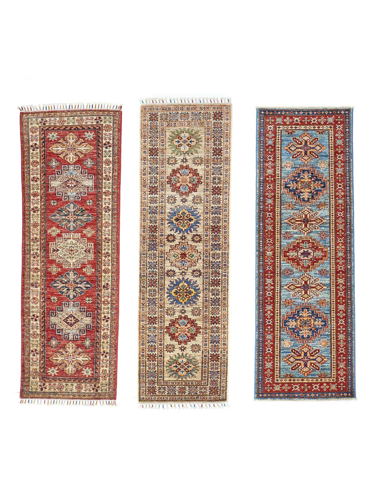 Caratterizzati da disegni geometrici caucasici questi esemplari prendono il nome dall’omonima città afgana di Ghazni, i colori caldi e l’uso di mescole con pigmentazioni vegetali rendono unico l’impatto cromatico.