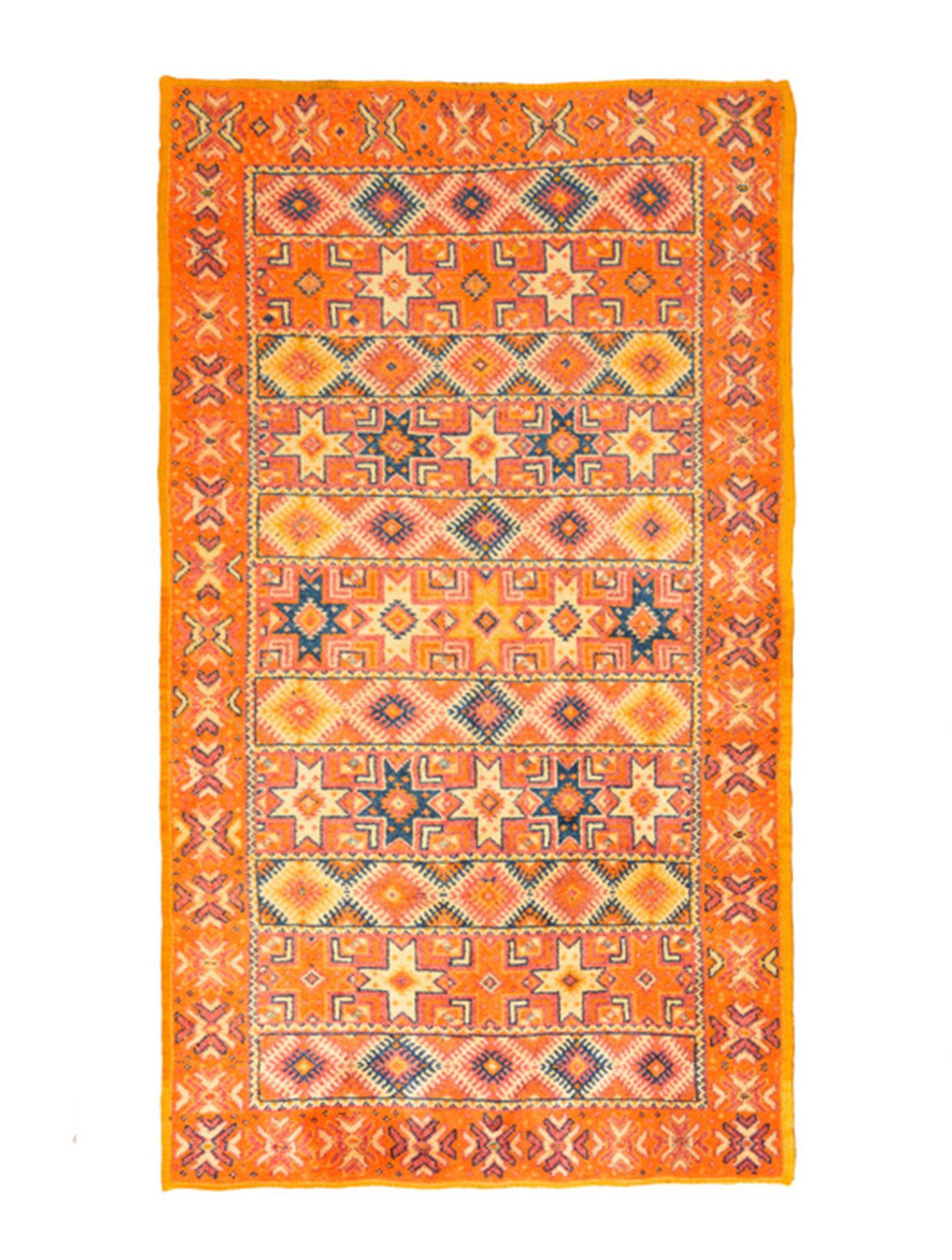Manufatto berbero annodato interamente in lana dalle omonime tribù dell’altopiano dell’Atlas, solitamente la lavorazione di questi tappeti è affidata alle donne