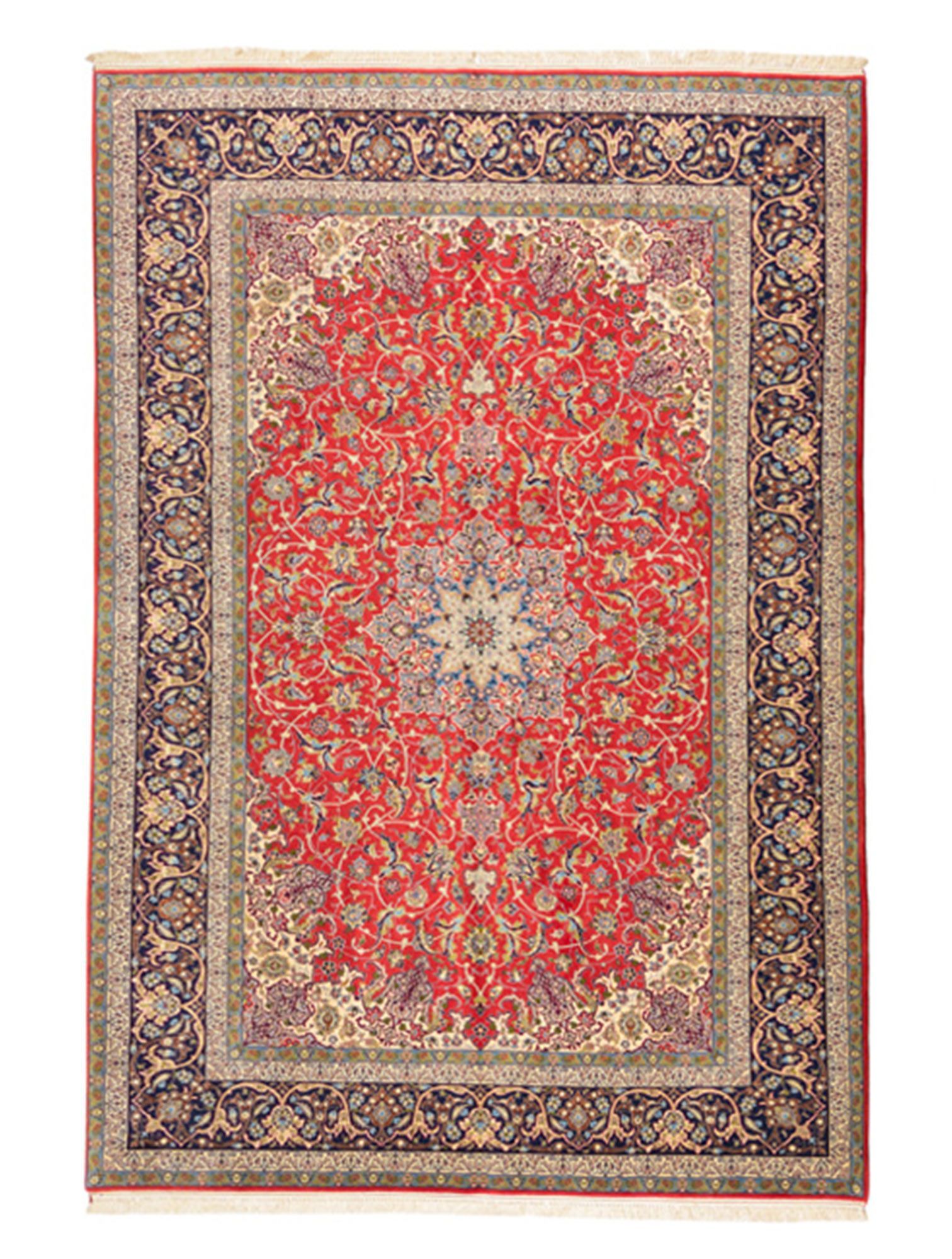 Habibian è uno dei più famosi maestri nella tessitura dei tappeti dei tempi moderni, questo esemplare racchiude in se tutte le caratteristiche che hanno reso la manifattura di Nain, nota agli estimatori