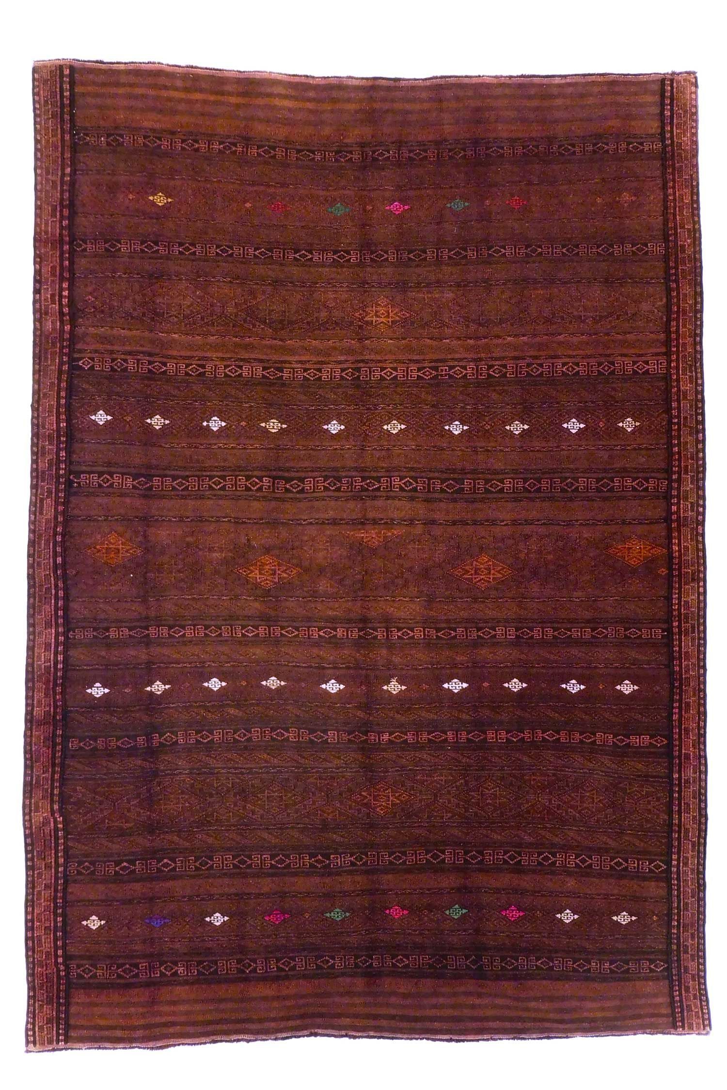 Manifattura artigianale afgana completamente in lana, particolarizzata dal fatto che sono le donne a seguirne la realizzazione, scegliendo le lane, l’uso dei colori e le fantasie nell’impianto di disegno